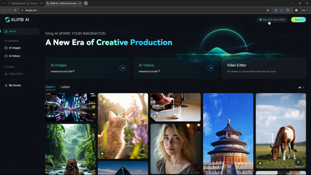 1 Cadastro e Login: Crie uma conta gratuita na plataforma da Kling AI e faça login.