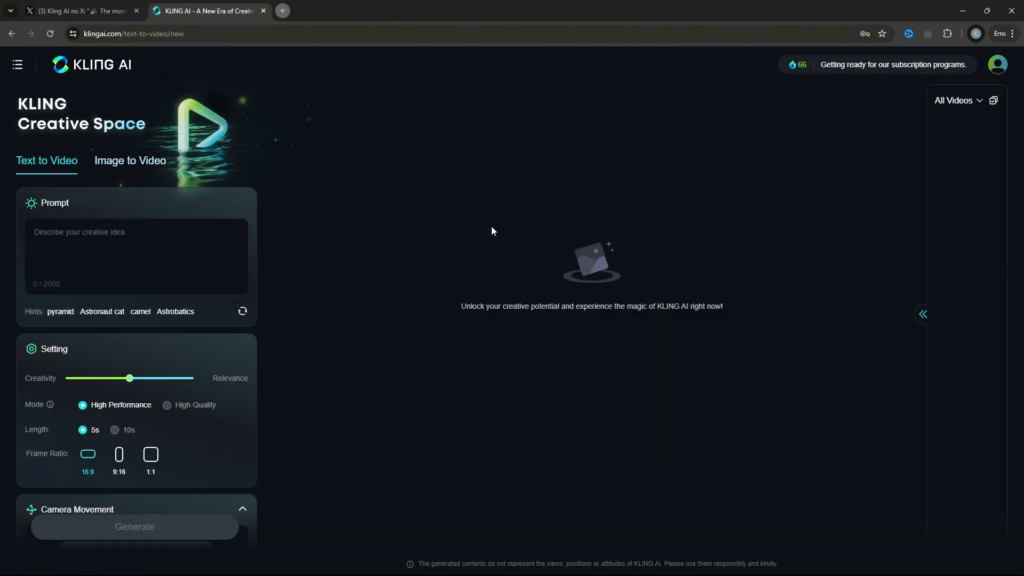 Agora que você está dentro do Kling AI, é hora de começar a criar. Siga os passos abaixo para gerar seu primeiro vídeo.
