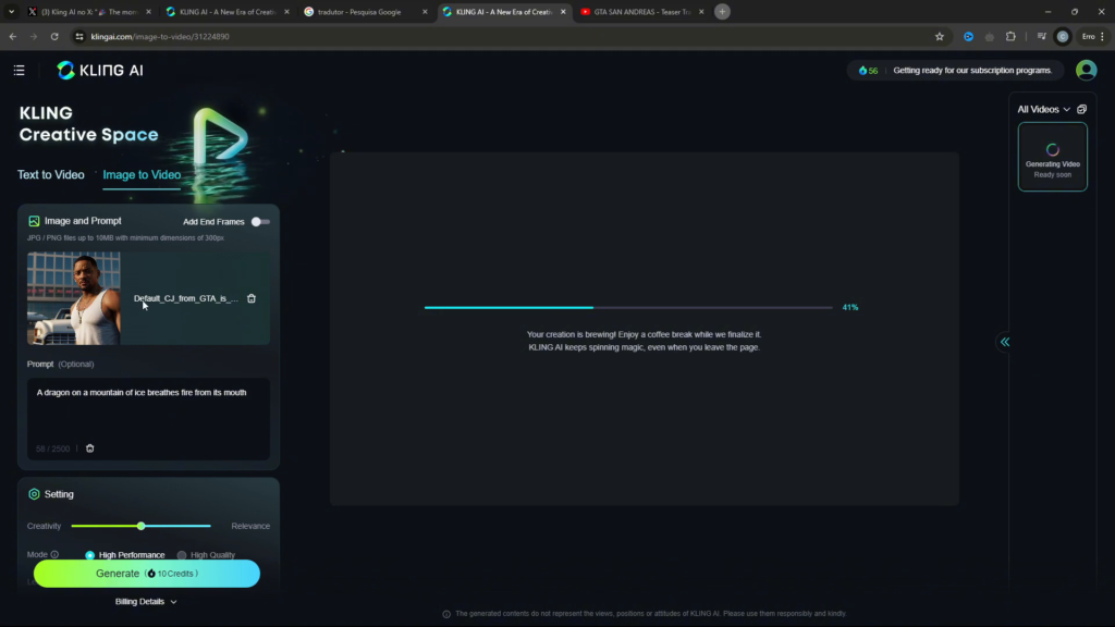 Se você já tem uma imagem que deseja animar, o Kling AI também permite isso. Aqui está como você pode animar uma imagem: